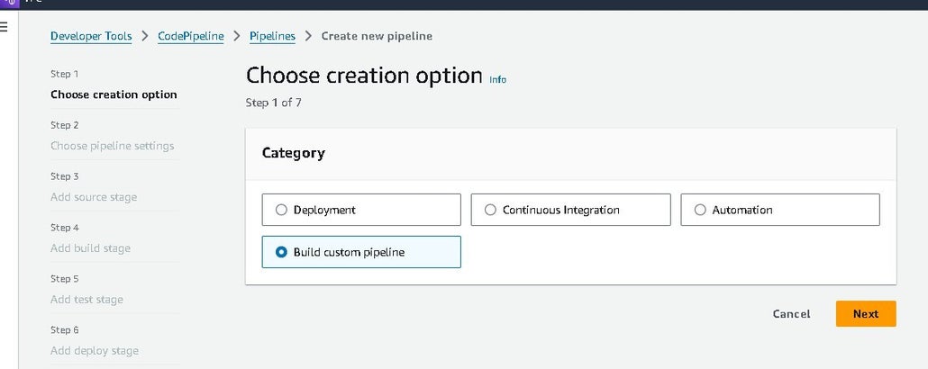 From the CodePipeline GUI on the console click "Create Pipeline" and then under category select "Custom Pipeline"